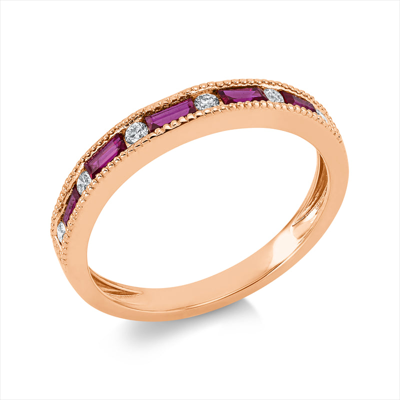 Ring 18 kt RG, 6 Brill. 0,11 ct, TW-si, 5 Rubine 0,39 ct rot