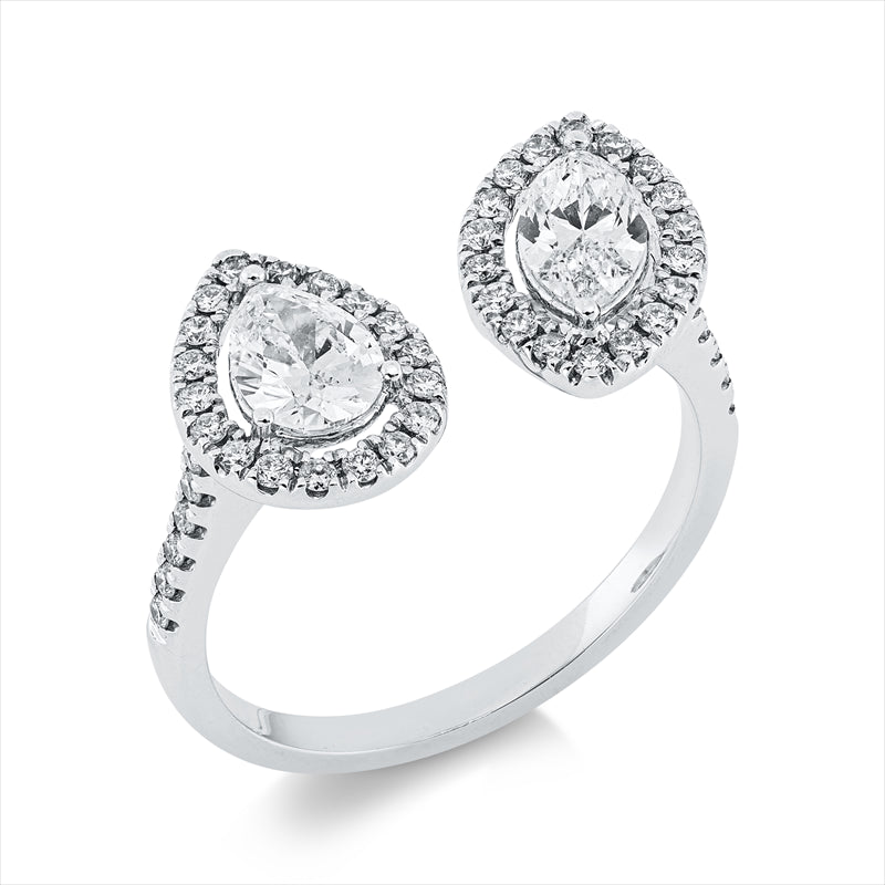 Ring 18 kt WG. 1 Tropfen 0.42 ct. TW-si. 1 Navette 0.40 ct. TW-si. 48 Brillanten 0.31 ct. TW-si. Weite:53