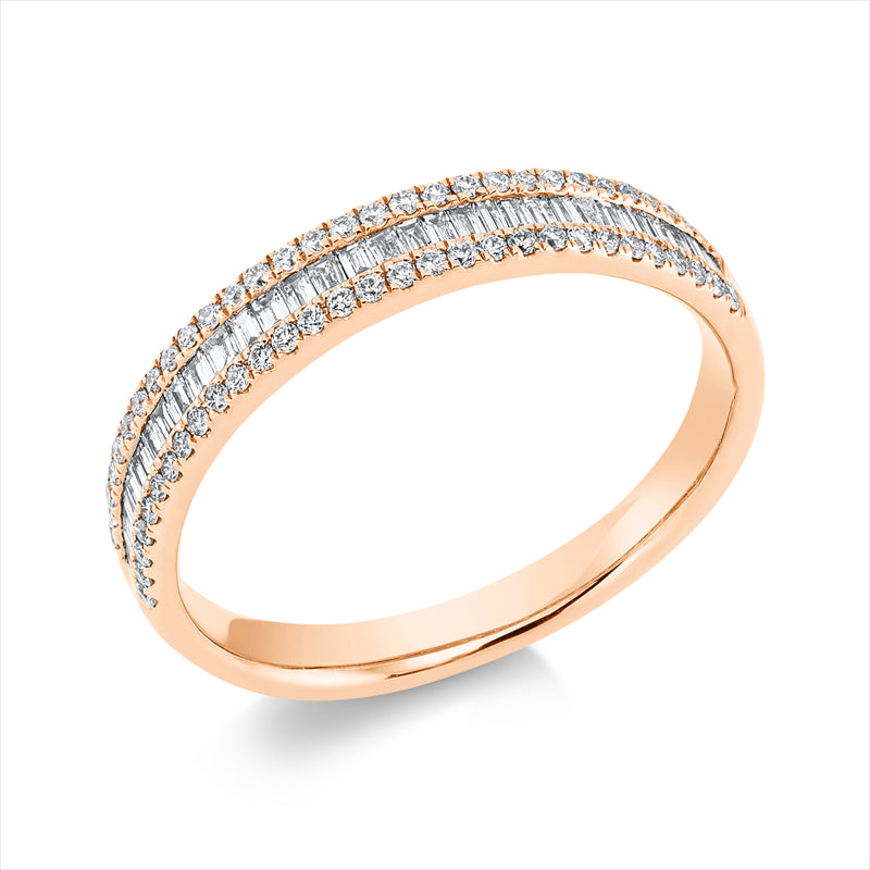 Ring 18 kt RG, 33 Bag. 0,24 ct, F-vsi, 60 Brill. 0,19 ct, F-si