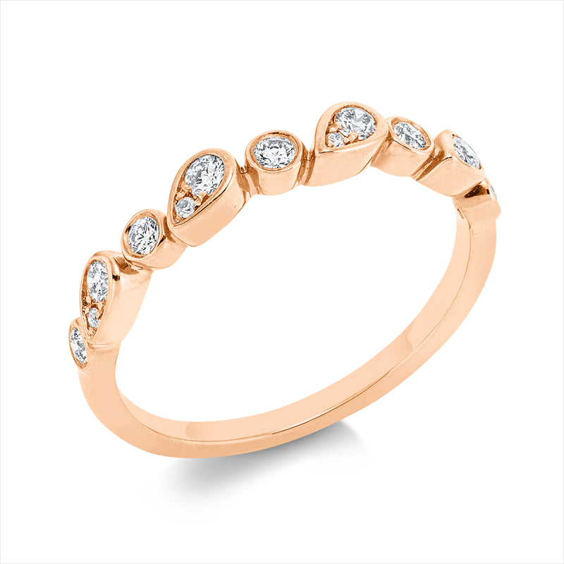 Ring 14 kt RG, 5 Brill. 0,12 ct, F-vsi/si, 4 Brill. 0,15 ct, F-vsi/si, 4 Brill. 0,02 ct, F-vsi/si