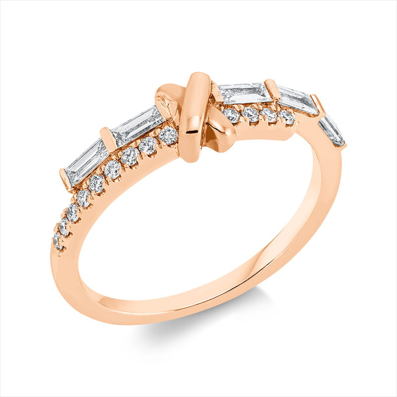Ring 18 kt RG, 5 Bag. 0,30 ct, F-vsi, 13 Brill. 0,11 ct, TW-si