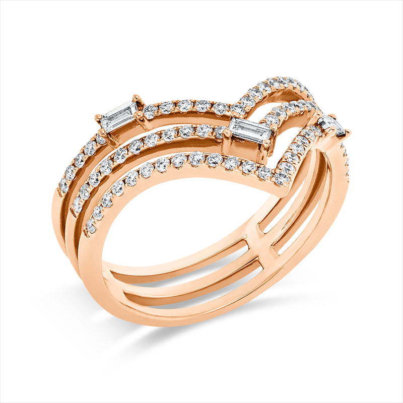 Ring 18 kt RG. 3 Baguette 0.14 ct. F-vsi. 71 Brillanten 0.44 ct. TW-si. Weite:54
