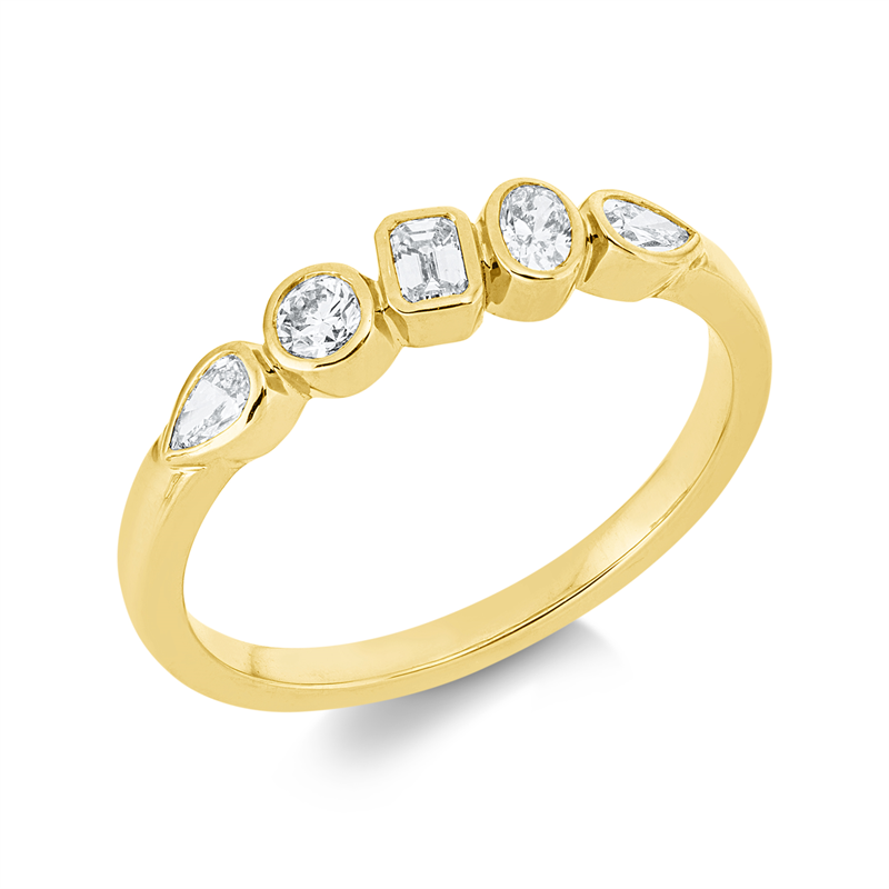 Ring 18 kt GG. 1 Brill. 0.08 ct. TW-si. 1 Sm.schliff 0.08 ct. TW-si. 1 Oval 0.08 ct. TW-si. 2 Tropfen 0.16 ct. TW-si. B:4.1 mm. Weite:54