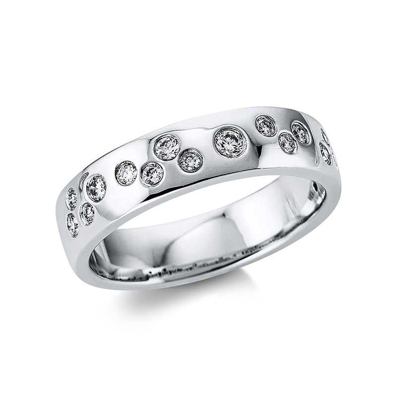 Ring 18 kt WG. 17 Brillanten 0.26 ct. TW-vsi. B:5.0 mm. Weite:54